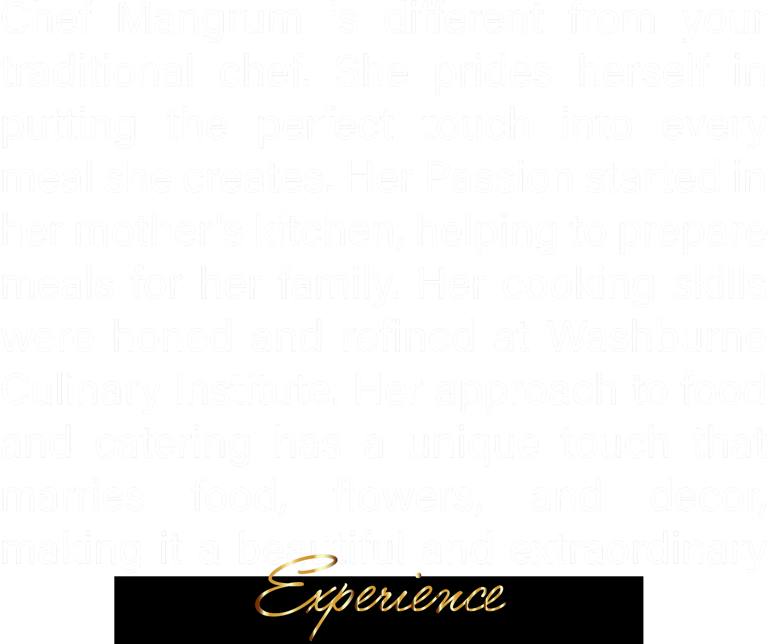 Mangrum Hospitality strives to elevate the average to extraordinary. Chef Mangrum and her team provide breath-taking experiences for events, special occasions, family gathering celebrations, and much more. Mangrum Hospitality curates aesthetically pleasing atmospheres. Our goal is to encapsulate an unforgettable experience where love, healing, and healthy interactions thrive.